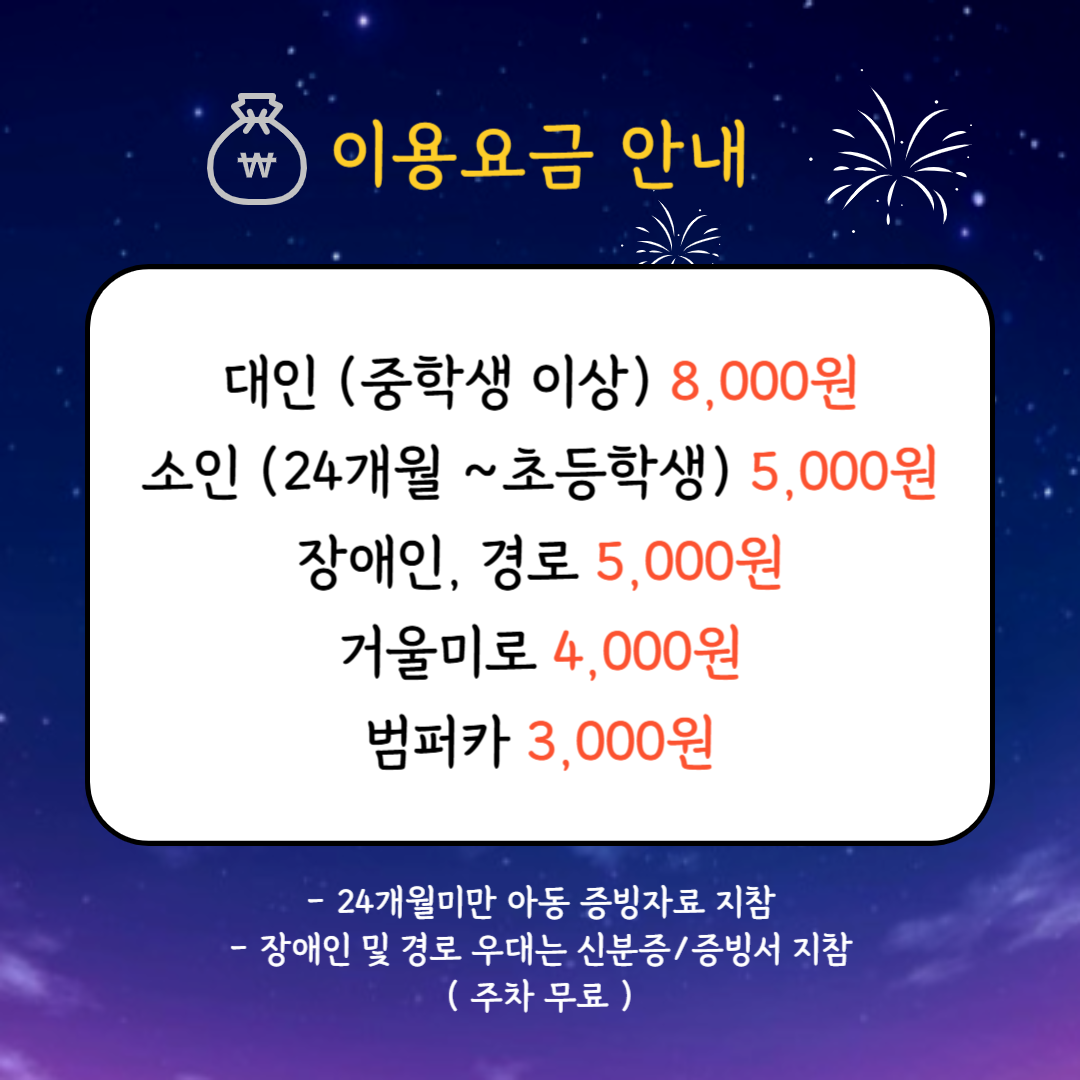 입장권 + 거울미로 (장애인, 경로우대) 1 인권 7,000원