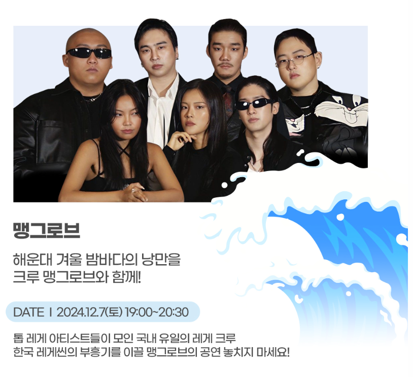 | 공연프로그램 | 19:00 ~ 20:30 | WINER X NIGHT / 맹그로브 |