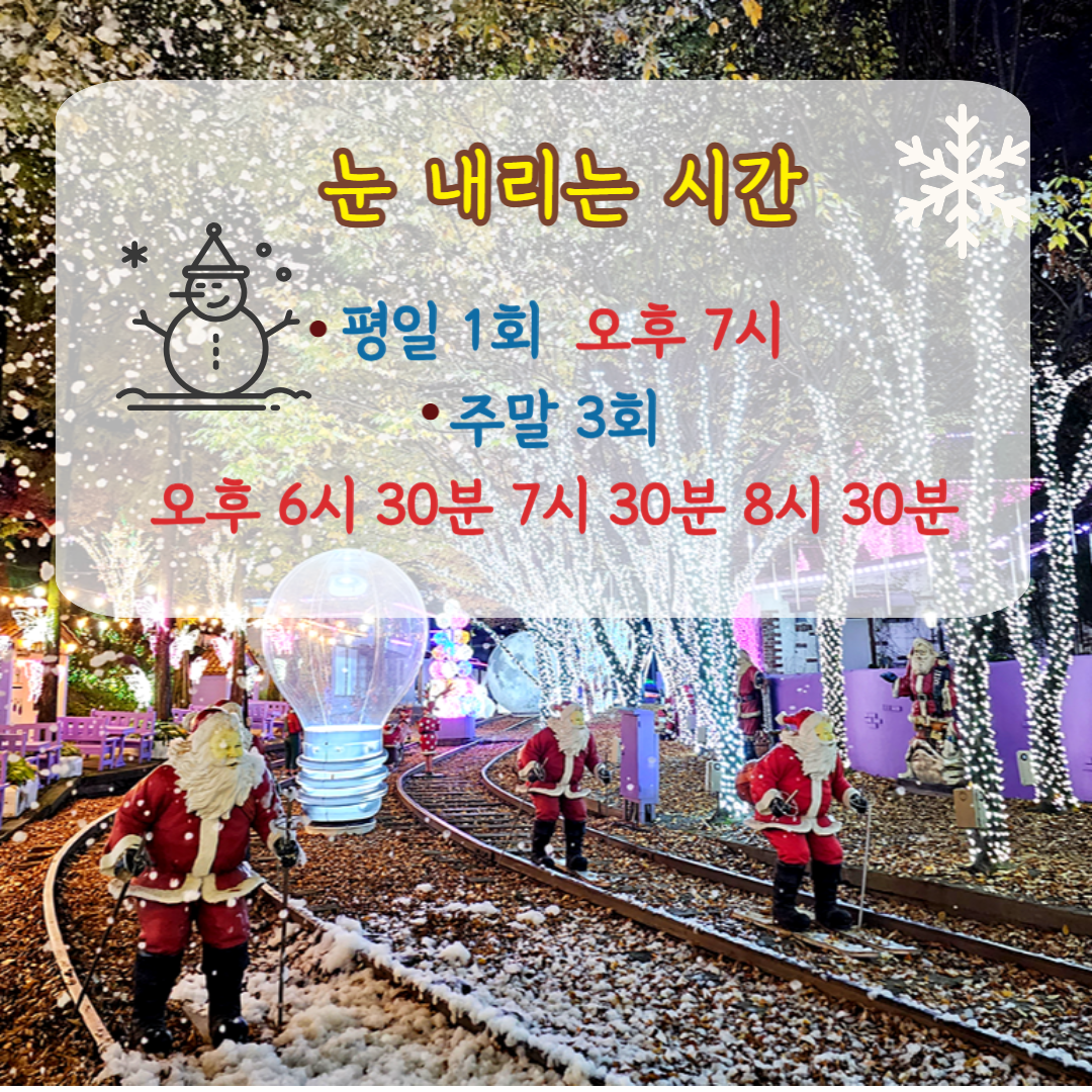 빛축제와 콜라보된 내리는 눈을 배경으로 낭만 가득한 인생샷도 찍어볼 수 있는 기회입니다.