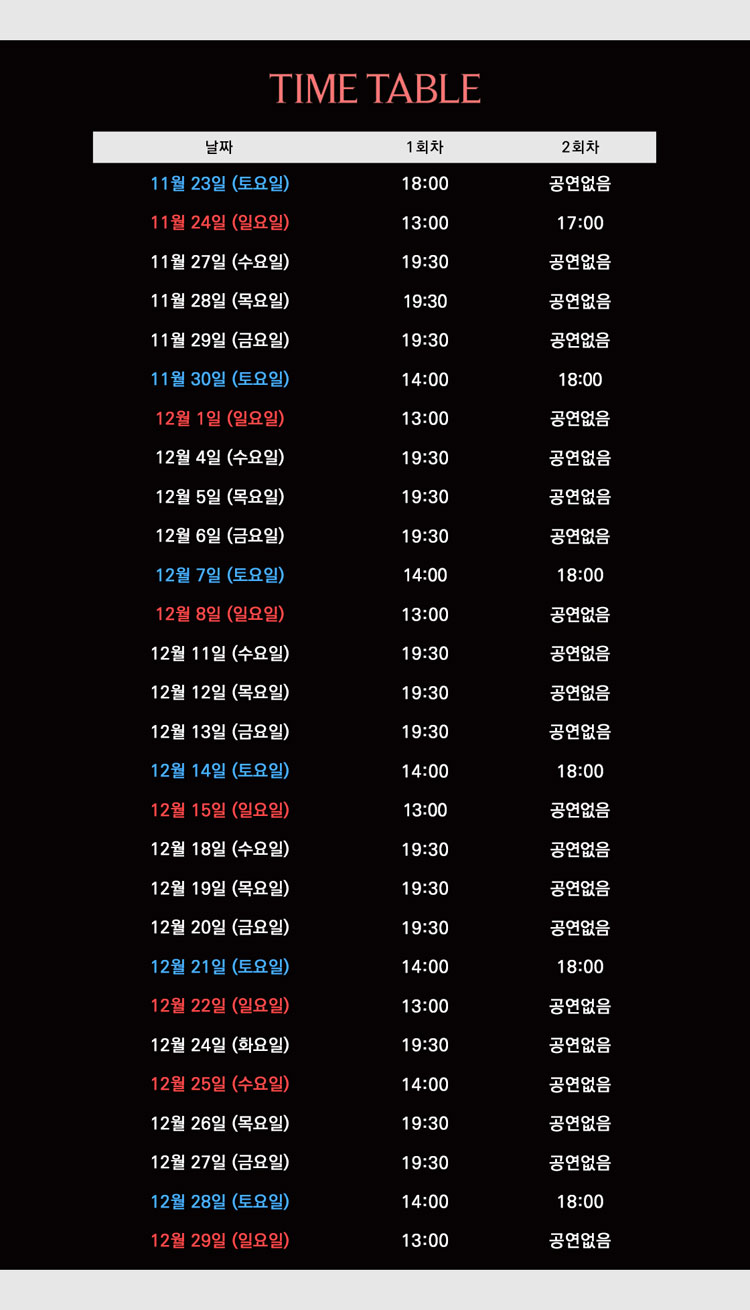 11월 23일(토) 첫 공연에 한해서만 가능합니다. (배송불가, 현장수령)
