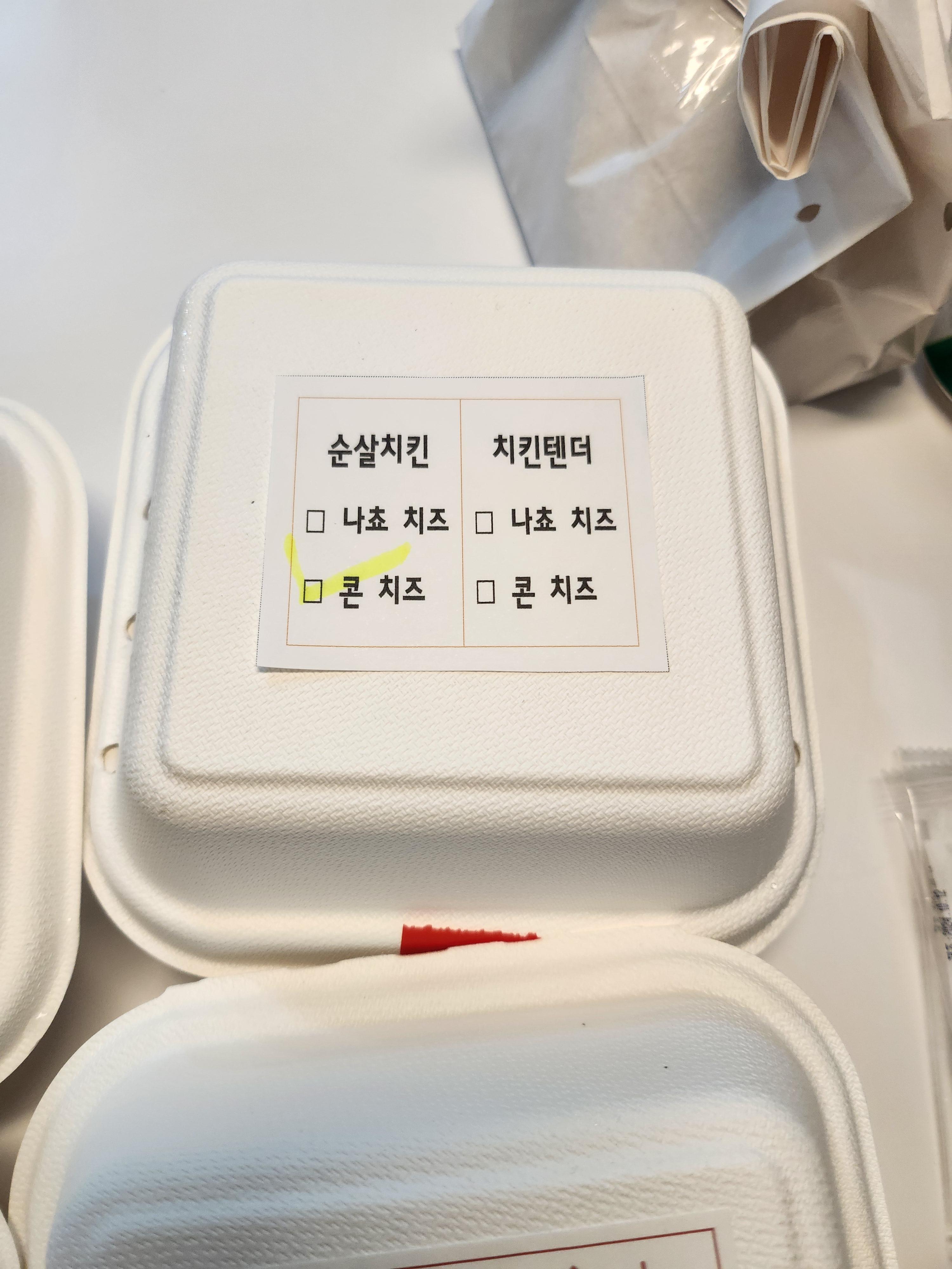 순살치킨은 콘치즈 시즈닝으로 선택했어요.