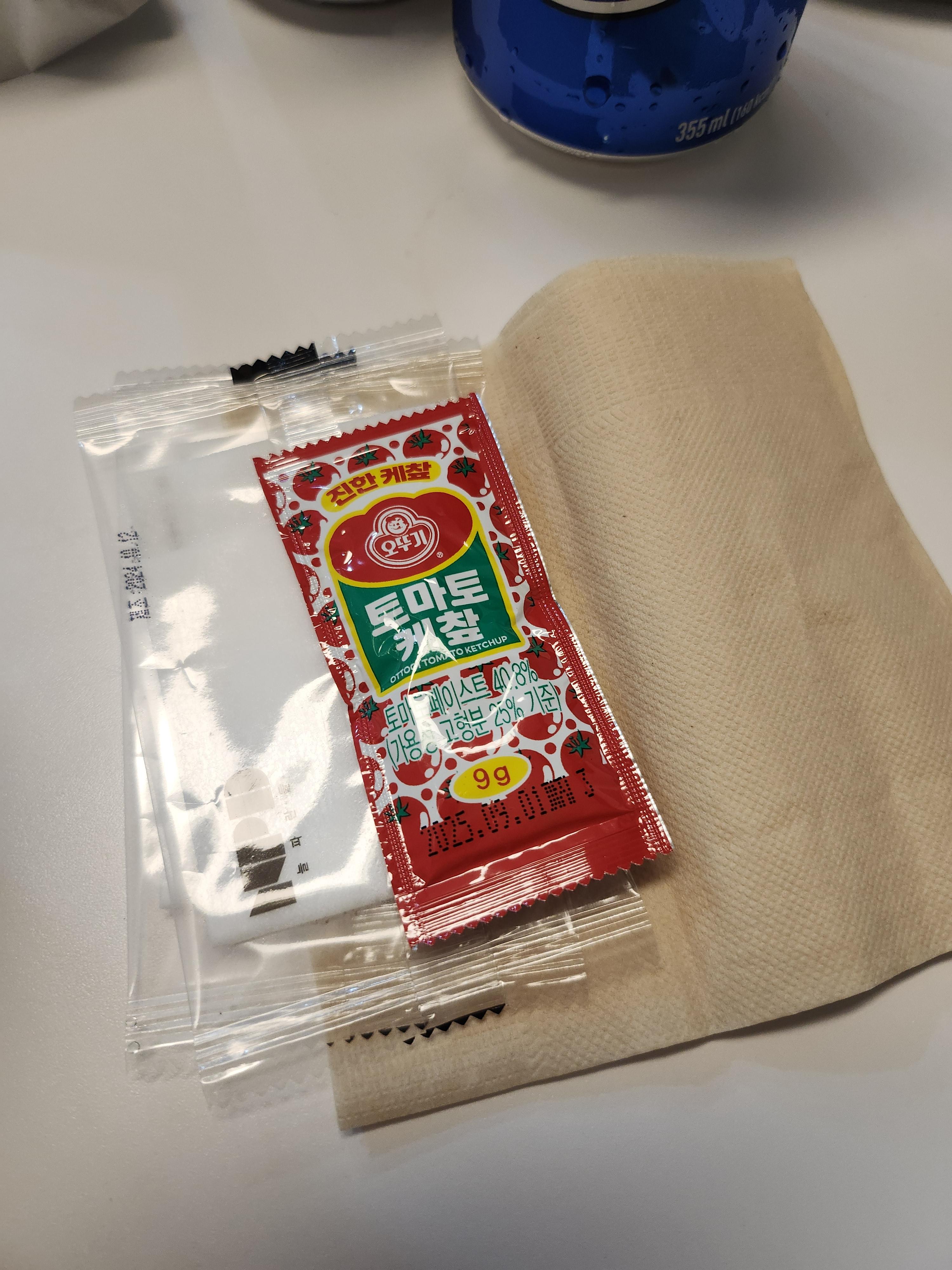 콜라 하나, 사이다 하나, 물티슈랑 케첩이랑...
